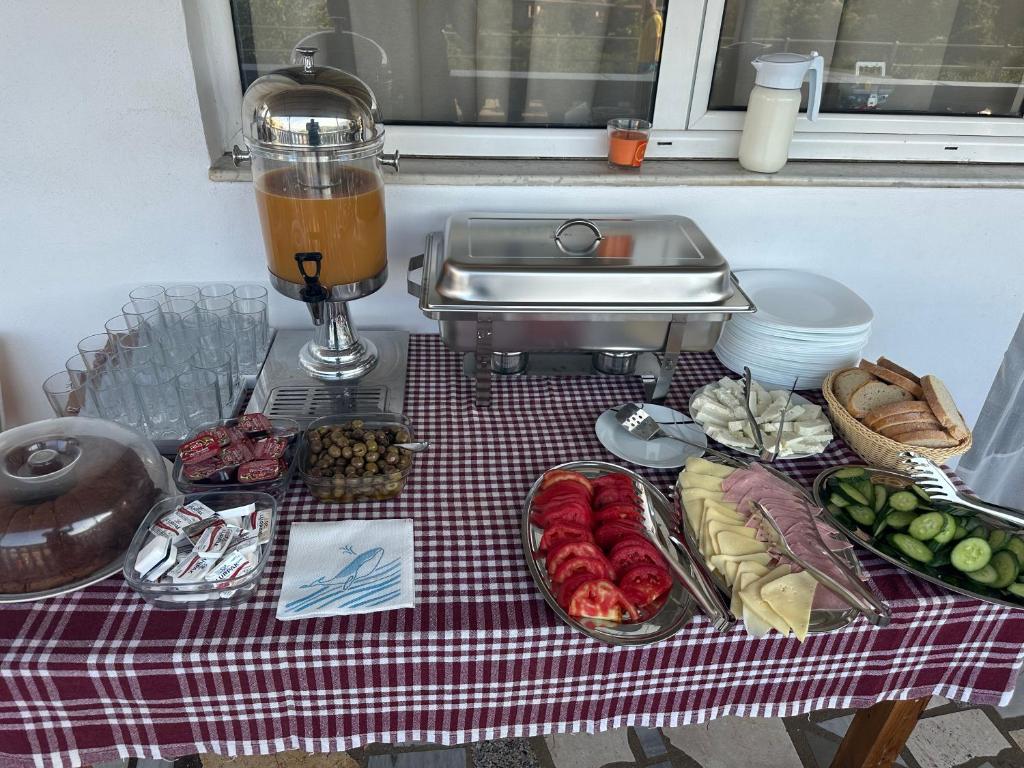 Guests can enjoy a complimentary breakfast of juice, pancakes, cheese, and fresh fruits daily, served in a cozy .